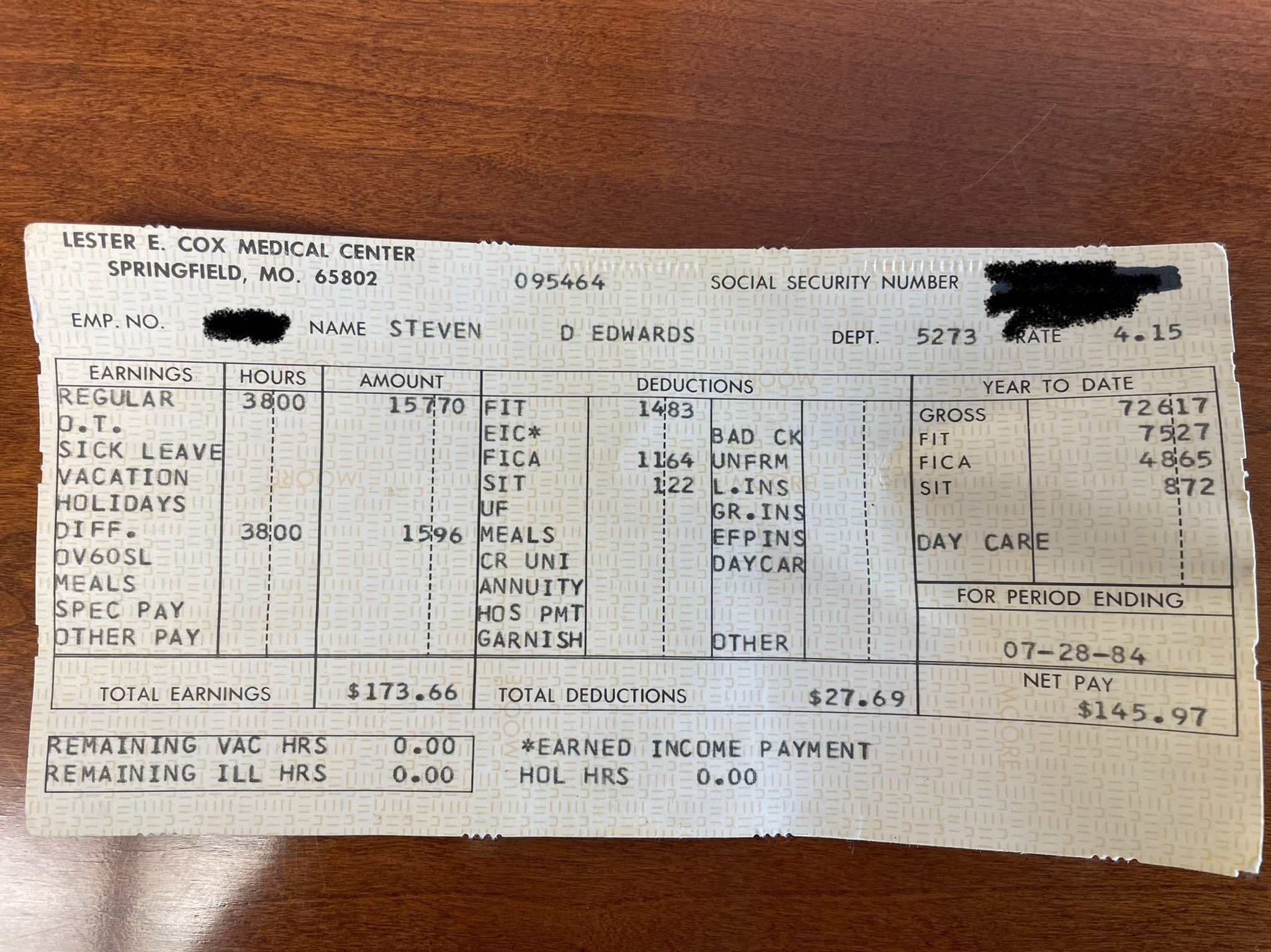 Steve Edwards On Twitter What An Early Pay Check Looked Like As An Er Orderly From 38 Years Ago State Income Tax 1 22 Fica 11 64 Bringing Home The Bacon Https T Co F9tkkrfx2f Twitter